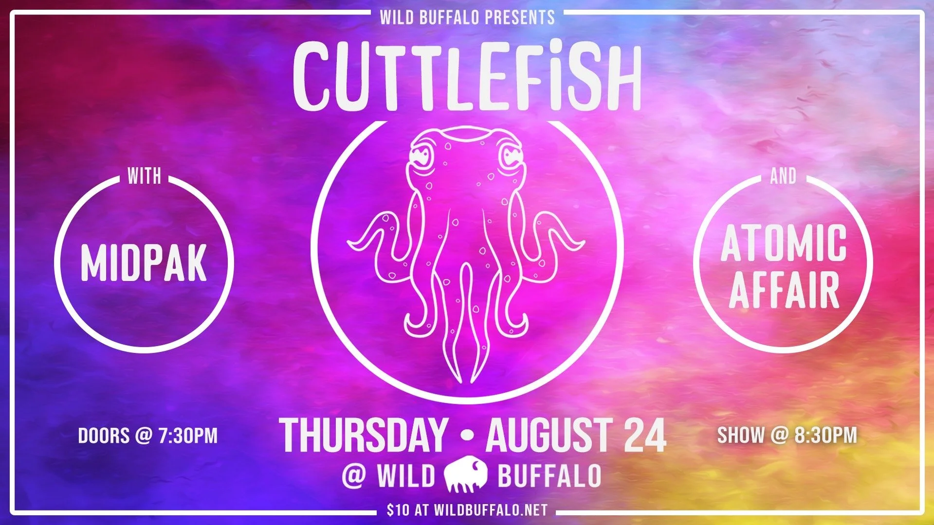 Cuttlefish is joined by Midpak, a Seattle based, instrumental, psychedelic funk-rock band, as well as Atomic Affair, a Bellingham rock band.
